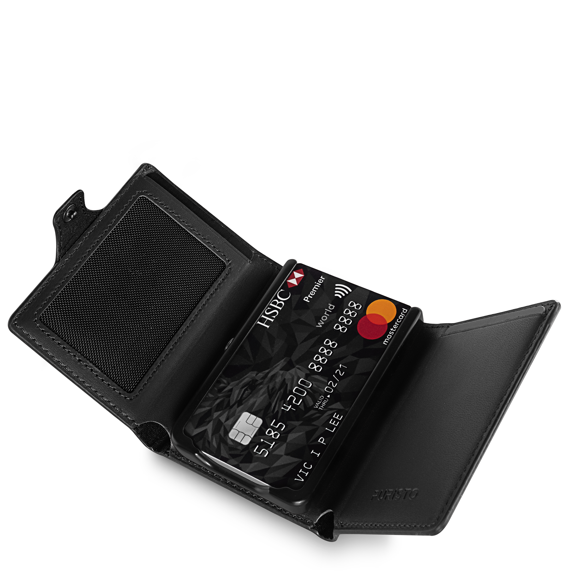 - Capienza Straordinaria: può accogliere comodamente fino a 14 carte (carte di credito, documenti, tessere fedeltà, biglietti da visita), in più, l'intuitivo meccanismo permette un accesso rapido e organizzato a tutte le tue carte.